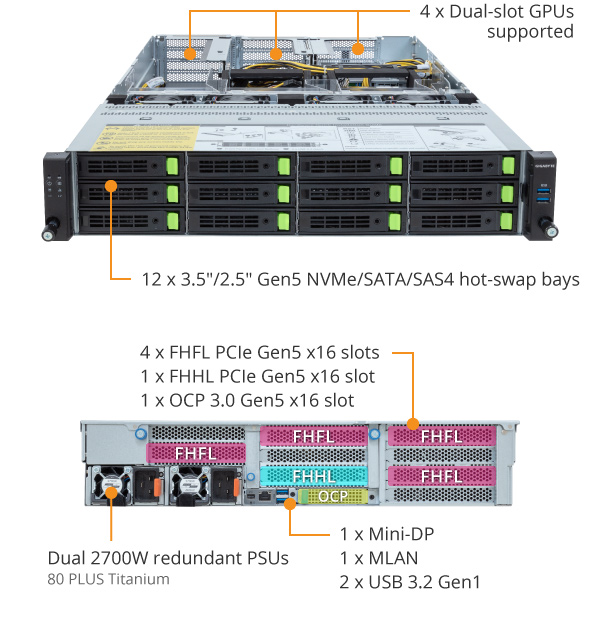 4 x FHFL PCIe Gen5 x16 slots for GPUs